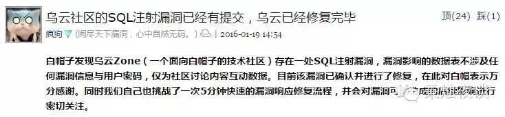 而乌云这类漏洞提交平台也非善类,因为上面的漏洞都是公开的,XX网站由于XX方面的原因有XX的风险。对于我们这等小白是看不懂的,但是对一些专业选手来说,不用再去自己辛苦的扫成千上亿个网站的漏洞,只要及时查阅平台内容,根据提交的漏洞信息大致尝试即可。平台成为了最新的漏洞播报站。